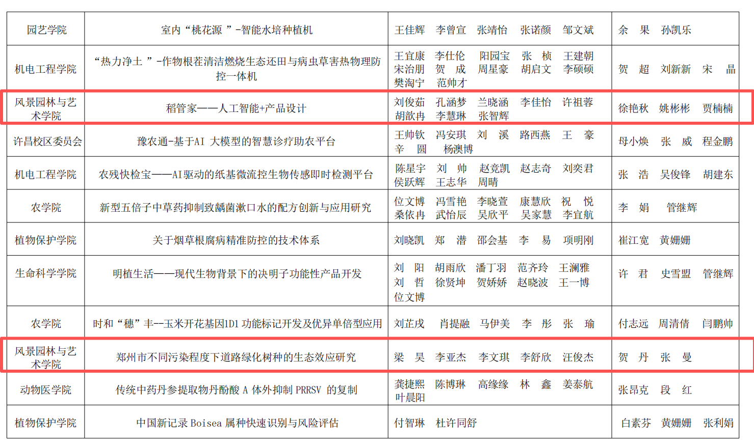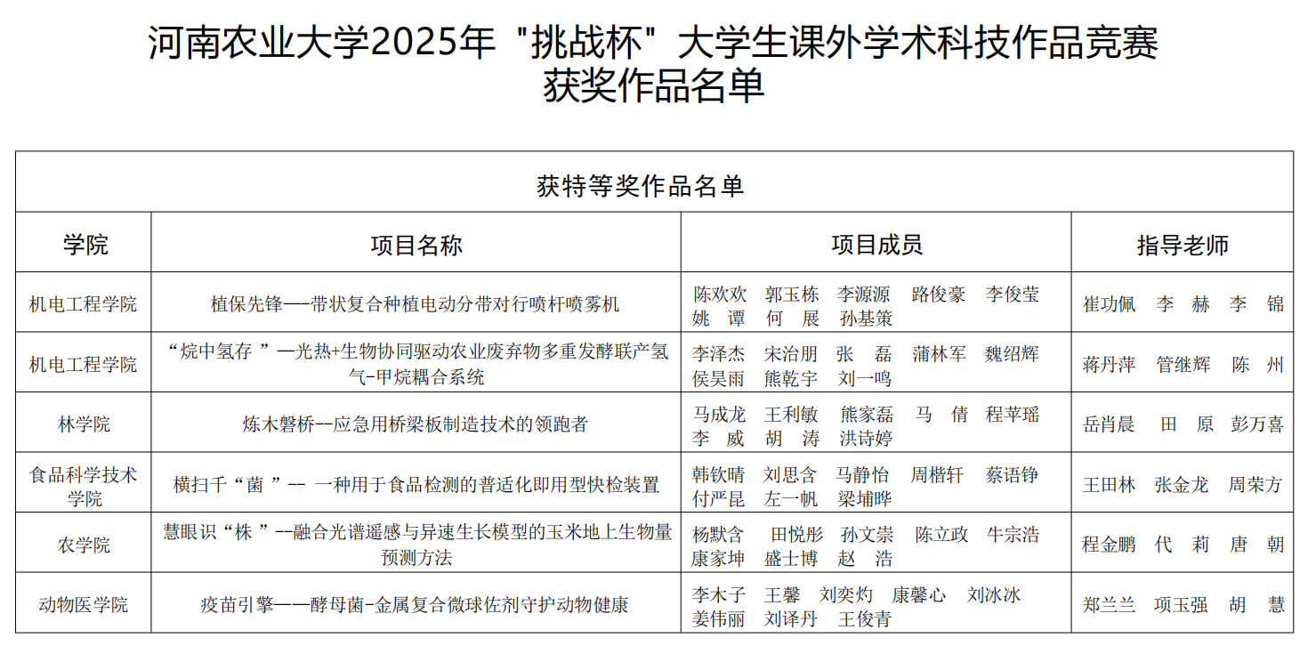获奖作品中,《豫见未来·乡链世界---设计赋能乡村振兴文化融创实践调研》项目获得特等奖。《有基于北方高密度街区调研的城市热环境与蓝绿基础设施优化策略》《戏脉黄河·匠心入韵--黄河国家文化公园河南段戏曲文化资源整合与文化线路地图研究》两个项目获得一等奖。《稻管家——人工智能+产品设计》《郑州市不同污染程度下道路绿化树种的生态效应研究》两个项目获得二等奖。三等奖作品有《河南省乡村旅游信息服务供需匹配现状及智慧化赋能对策调查研究》《中原民俗文化应用推广研究——以许昌市霍庄村社火文化为例》《台风模拟实验教育展示装置》。每一份荣誉的取得,既离不开指导老师的悉心指导与专业引领,也凝聚着同学们的不懈拼搏与团队协作。这不仅生动展现了巨乳a片
